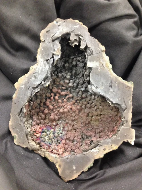 I took a wasp nest and packed paper clay in the nest and then put it in a raku kiln
